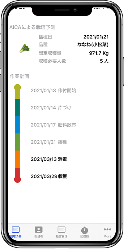 圃場の状況と気象予測により、「AICA」が圃場に必要な生育作業を予測し提案します。